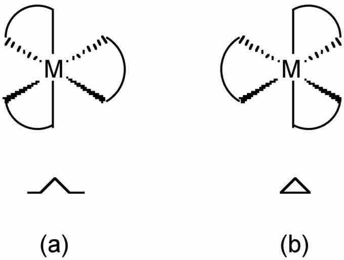 Optical isomerism occurs when a molecule is not superimposable with its mirror image. If you shine light through pure solutions of each optical isomer they would rotate the plane of polarized light in opposite directions. The symbol Λ (lambda) is used as a prefix to describe the left-handed propeller twist formed by three bidentate ligands. The symbol Δ (delta) is used as a prefix for the right-handed propeller twist.