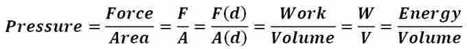 This equation is the derivation of pressure as a measure of energy per unit volume from its definition as force per unit area.