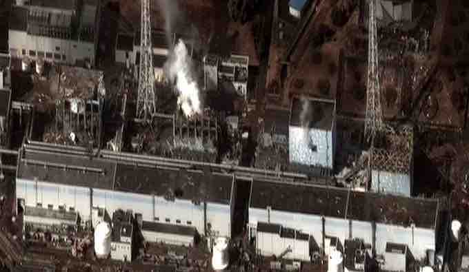 Satellite image taken March 16, 2011 of the four damaged reactor buildings