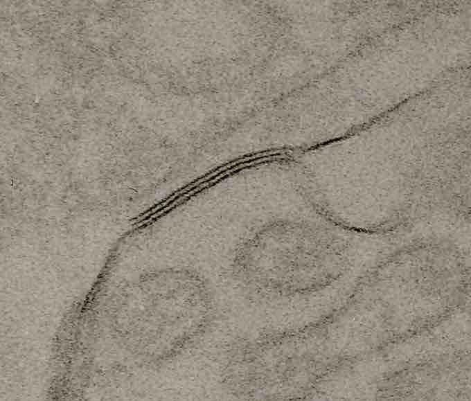 An electron micrograph showing a tight junction in rat kidney tissue. The three dark lines of density correspond to the tight junction and the light lines in between correspond to the paracellular space.