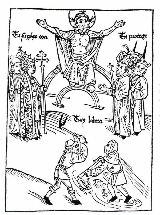 This fifteenth-century woodcutting illustrates the closed stratification system of the three estates of the French Ancien Régime. People were divided into clergy, nobility, and commoners. These categories were discrete, and there was little interaction or mobility between them.